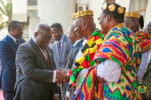 A working ministerial session of the two delegations will also take place simultaneously at the palace. Foreign Minister, Hon. Shirley AYorkor Boatchway, MP; Trade and Industry Minister, Hon. Alan Kyerematen; National Security Minister, Hon. Albert Kan Dapaah; Interior Minister, Hon. Ambrose Dery, MP; Defence Minister, Hon. Dominic Nitiwul, MP; Sanitation and Water Resources Minister, Hon. Kofi Adda, MP, are all part of President Akufo-Addo’s delegation.