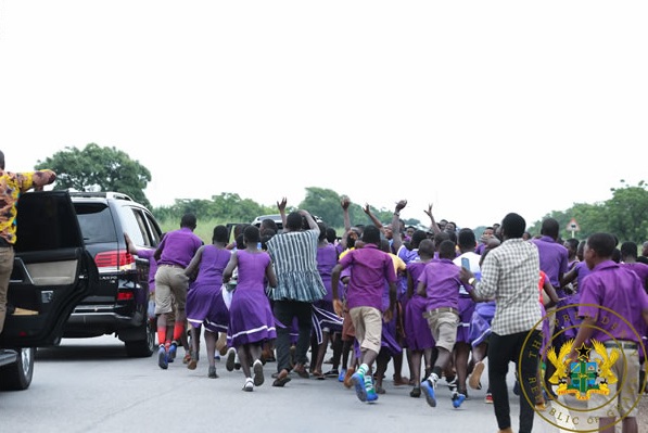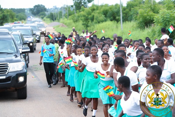 Technical School, Gambaga Senior High School, Nalerigu Senior High School, lined up along the streets of Walewale, Nalerigu and Gambaga to welcome the President.