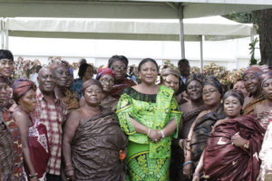In attendance with the First Lady were Hon. S.K Boafo, Former Minister of Chieftaincy, Hon. Paul Essien, Deputy Minister of Chieftaincy and Stephen Amoah, CEO of MASLOC.