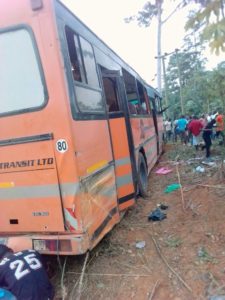 Enchi District Police Commander Supt. Kofi Ezuah said the accident occurred Tuesday 4:30 pm, when the driver side tyre of the bus with registration No. AW 8109 got busted and somersaulted, trapping over 40 passengers between Yiwabra and Nyanney Camp.