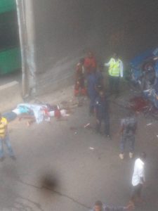 According to eye witness who spoke to Chief Jerry Justice on Ghana Yensom on Accra100.5FM, the bus heading to Accra from Nsawam got its back tyre burst at Tantra Hill which caused the driver to lose control of the vehicle.