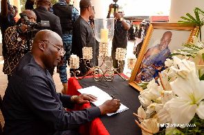 Vice President, Dr. Mahamudu Bawumia signing Appiah Menka’s book of condolence