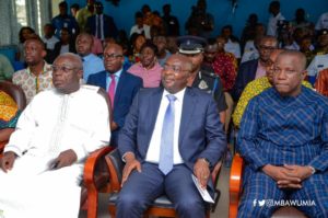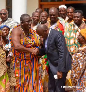 Nana Kobina Nketsia V, Paramount Chief of Essikado Traditional Area and his Kinsmen briefed the Vice President during the tour about issues on the ground.