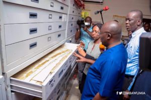 Dr Bawumia expressed particular worry at the conditions at the records department of the Land Title Division, and the seemingly disorganised manner of the land management process.