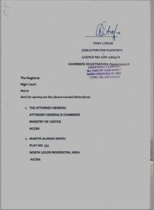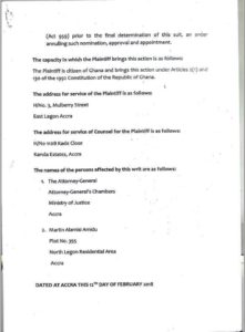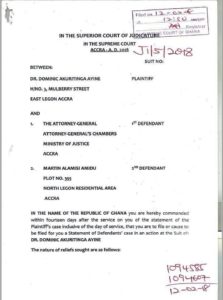 The former Deputy Attorney General, in a suit filed at the Supreme Court on Monday, is seeking among other things, a declaration that Mr. Martin Amidu is not eligible for employment in any public office created per his age.