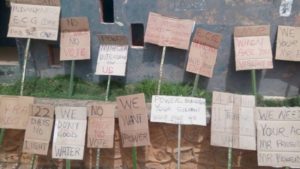 Carrying placards, scores of residents picketed at the Great Consolidated Diamonds Limited where a press conference was held demanding government ends the “unfair” treatment to residents there.