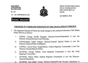 The IGP has reassigned his Director of Operations COP George Dampare to head the research department.