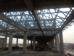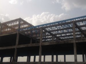 Construction workers were spotted during a visit to the site on Friday 6th April 2018, busily fixing the roof of some buildings in the market whilst some new pillars were also being mounted. Some electrical works were also in progress during the visit.