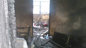 The victim, who is twenty years old in his attempt to quench the inferno got burnt in the process as other tenants were running helter-skelter unsuccessfully to get help from the Fire service.