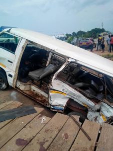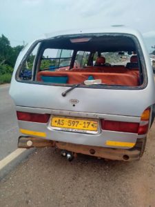 According to an eyewitness, Abdul Malik Anokye, he told Otec News the accident happened when a Nissan Urvan mini bus with registration number BA-930-N, carrying a youth football team from Senfi, in the Amansie East municipal in the Ashanti region, was hit at the back by a KIA Prejio car, with registration number AS-597-17, resulted in the somersault of the Nissan Urvan bus.