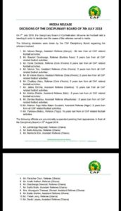 On 7th July 2018, the Disciplinary Board of Confédération Africaine de Football held a meeting in order to decide over the cases of the referees named in media.