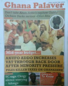 Home/Politics/Today at the newsstand Newspaper HeadlinesPolitics Today at the newsstand 0 50 Less than a minute Facebook Twitter LinkedIn Pinterest Skype WhatsApp Telegram Viber Source: Ghana/otecfmghana.com 0 50 Less than a minute Facebook Twitter LinkedIn Pinterest Skype WhatsApp Telegram Viber Show More Share Facebook Twitter LinkedIn Pinterest Skype WhatsApp Telegram Viber Share via Email Print