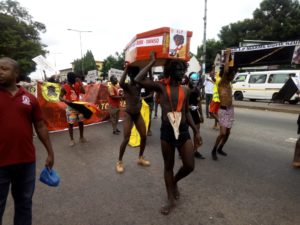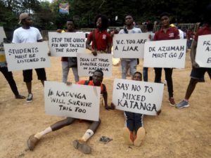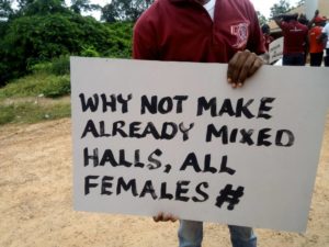 The alumni and students of the Unity and University halls of Kwame Nkrumah University of Science and Technology (KNUST) have embarked on a half-naked demonstration to fight against the university’s conversion of all of its residential halls into mixed-gender facilities.