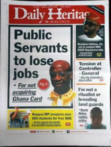 Home/Newspaper Headlines/Today at the newsstand Newspaper HeadlinesPolitics Today at the newsstand 0 53 Less than a minute Facebook Twitter LinkedIn Pinterest Skype WhatsApp Telegram Viber Source: Ghana/otecfmghana.com 0 53 Less than a minute Facebook Twitter LinkedIn Pinterest Skype WhatsApp Telegram Viber Show More Share Facebook Twitter LinkedIn Pinterest Skype WhatsApp Telegram Viber Share via Email Print