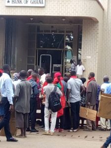 The aggrieved customers later stormed the office of the Bank of Ghana (BoG) at Adum with a petition to plead with the apex bank to intervene in the matter but managers refused to collect the petition and rather directed them to go to their head office in Accra.