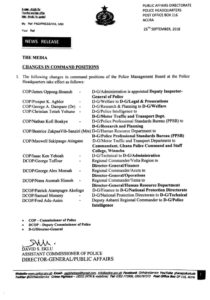 The police administration has reshuffled some of its Director Generals and filled the vacant position of Deputy Inspector General of Police (IGP) in the Command Structure.