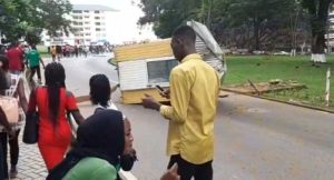 Demonstrating students of the Kwame Nkrumah University of Science and Technology (KNUST) have burned down the official vehicle of the Dean of Students and reportedly ransacked the Vice Chancellor’s office.