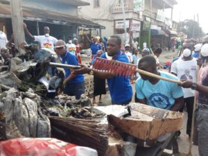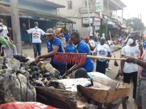 The Association of NPP identifiable groups in the Kumasi Central market over the weekend held a massive cleanup exercise at Central Business District (CBD) and some parts of the metropolis as part of their social responsibilities and support to the Kumasi Metropolitan Assembly (KMA) to restore cleanliness and beautification of the Garden City of Africa.