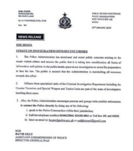 “Officers from specialised units of the Criminal Investigation Department including the Counter-Terrorism and Special Weapon and Tactics Units are part of the team of investigators handling these cases,” the statement signed by Assistant Commissioner of Police, David Eklu, said.