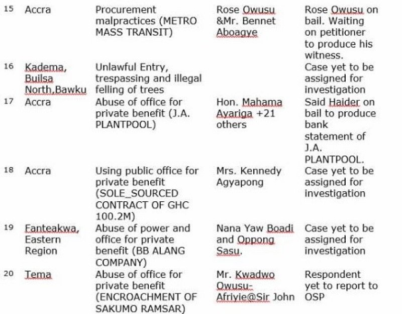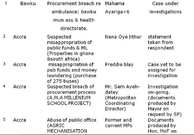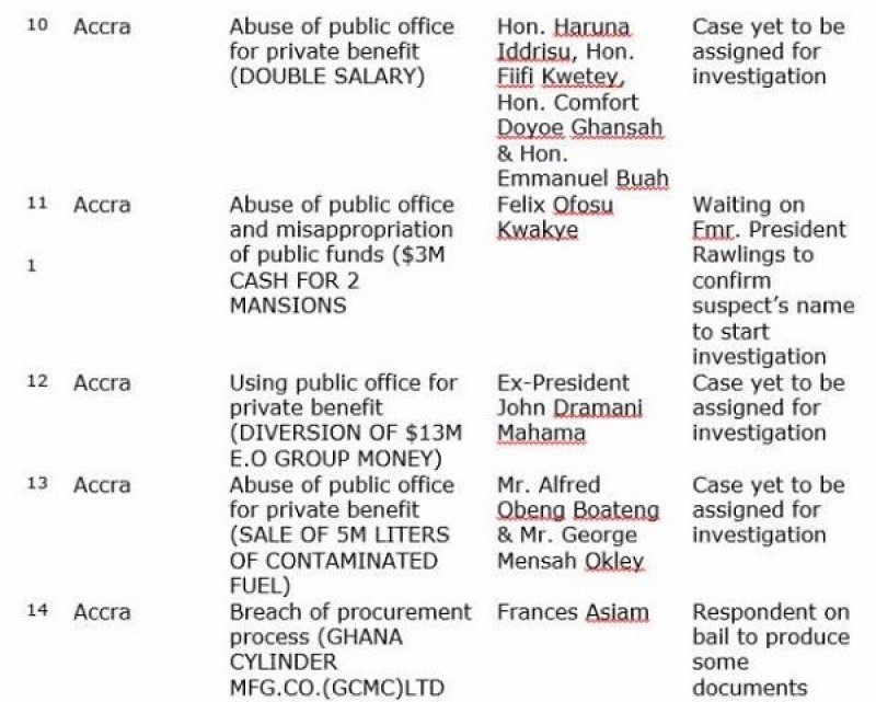Otecfmfghana.com has cited a list of 26 cases being investigated by Special Prosecutor Martin Amidu.