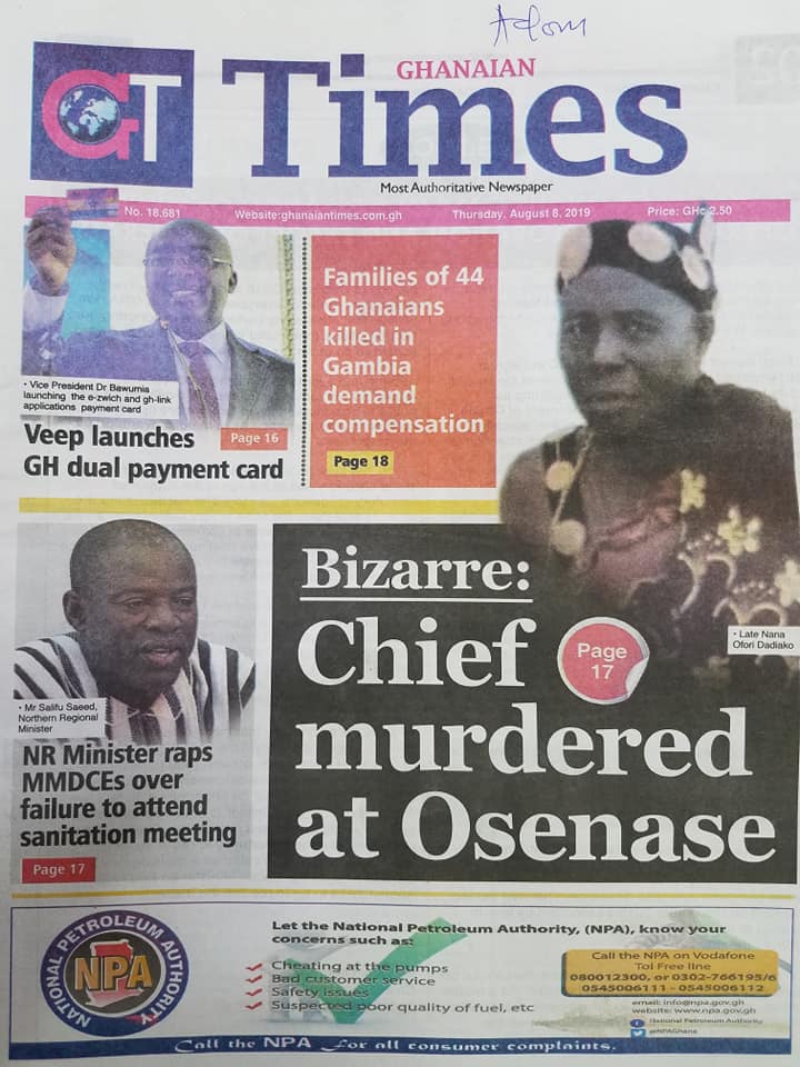 Home/Newspaper Headlines/Today at the newsstand Newspaper HeadlinesPolitics Today at the newsstand 0 73 Less than a minute Facebook Twitter LinkedIn Pinterest Skype WhatsApp Telegram Viber Source: Ghana/otecfmghana.com 0 73 Less than a minute Facebook Twitter LinkedIn Pinterest Skype WhatsApp Telegram Viber Show More Share Facebook Twitter LinkedIn Pinterest Skype WhatsApp Telegram Viber Share via Email Print