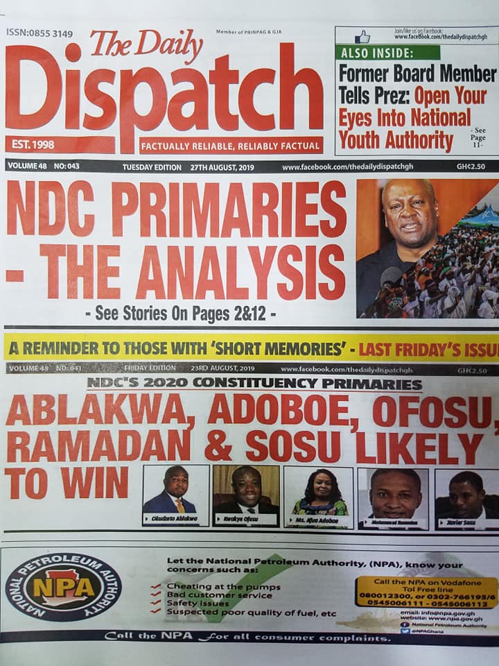 Home/Newspaper Headlines/Today at the newsstand Newspaper HeadlinesPolitics Today at the newsstand 0 57 Less than a minute Facebook Twitter LinkedIn Pinterest Skype WhatsApp Telegram Viber Source: Ghana/otecfmghana.com 0 57 Less than a minute Facebook Twitter LinkedIn Pinterest Skype WhatsApp Telegram Viber Show More Share Facebook Twitter LinkedIn Pinterest Skype WhatsApp Telegram Viber Share via Email Print