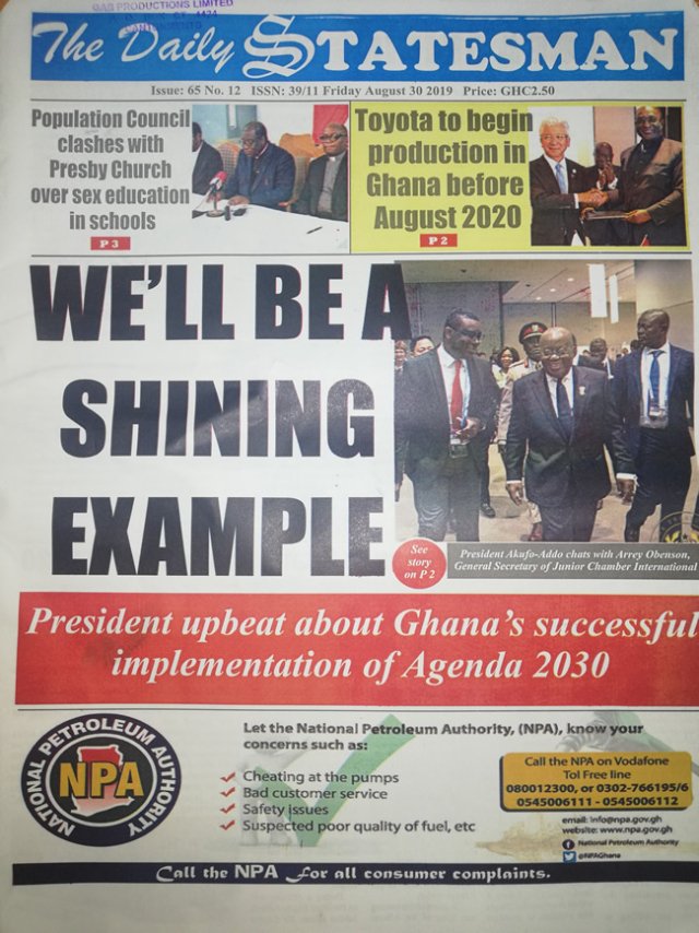 Home/Newspaper Headlines/Today at the newsstand Newspaper HeadlinesPolitics Today at the newsstand 0 75 Less than a minute Facebook Twitter LinkedIn Pinterest Skype WhatsApp Telegram Viber Source: Ghana/otecfmghana.com 0 75 Less than a minute Facebook Twitter LinkedIn Pinterest Skype WhatsApp Telegram Viber Show More Share Facebook Twitter LinkedIn Pinterest Skype WhatsApp Telegram Viber Share via Email Print