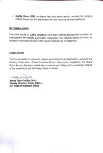 The West African Examination Council has withheld the results of 2,061 candidates who took part in this year’s Basic Education Certificate Examinations (BECE) pending the conclusion of investigations into alleged examination malpractice.