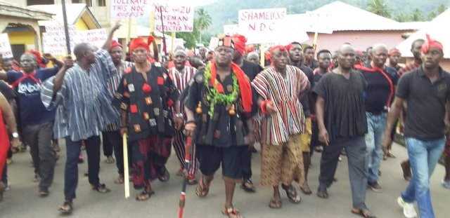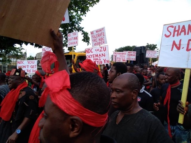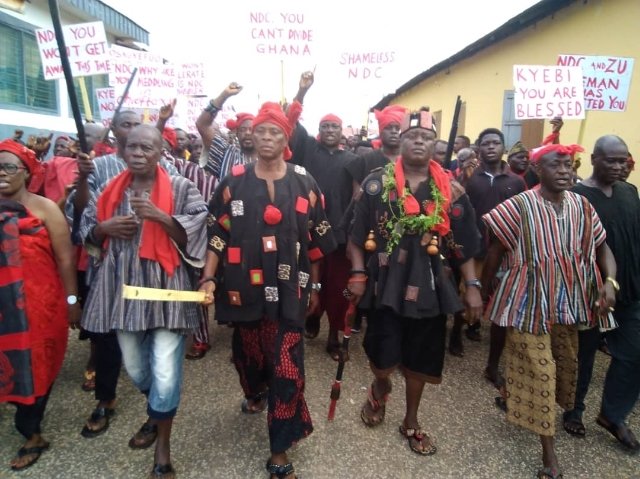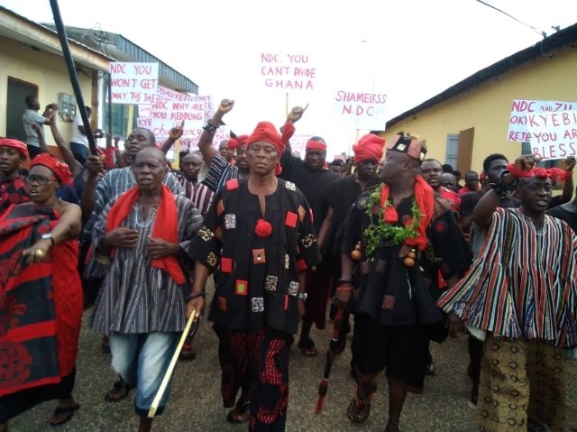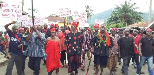 Akyem Abuakwa Traditional Council is leading a demonstration Monday against the leadership of the opposition National Democratic Congress (NDC).
