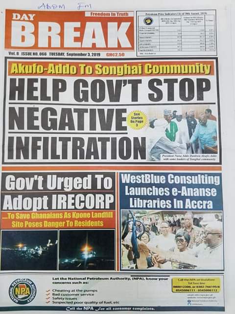 Home/Politics/Today at the newsstand Newspaper HeadlinesPolitics Today at the newsstand 0 44 Less than a minute Facebook Twitter LinkedIn Pinterest Skype WhatsApp Telegram Viber Source: Ghana/otecfmghana.com 0 44 Less than a minute Facebook Twitter LinkedIn Pinterest Skype WhatsApp Telegram Viber Show More Share Facebook Twitter LinkedIn Pinterest Skype WhatsApp Telegram Viber Share via Email Print
