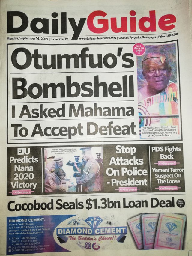 Home/Politics/Today at the newsstand Newspaper HeadlinesPolitics Today at the newsstand 0 57 Less than a minute Facebook Twitter LinkedIn Pinterest Skype WhatsApp Telegram Viber Source: Ghana/otecfmghana.com 0 57 Less than a minute Facebook Twitter LinkedIn Pinterest Skype WhatsApp Telegram Viber Show More Share Facebook Twitter LinkedIn Pinterest Skype WhatsApp Telegram Viber Share via Email Print
