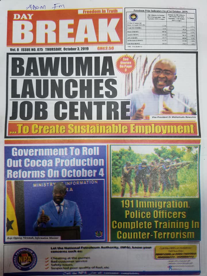 Home/Politics/Today at the newsstand Newspaper HeadlinesPolitics Today at the newsstand 0 62 Less than a minute Facebook Twitter LinkedIn Pinterest Skype WhatsApp Telegram Viber Source: Ghana/otecfmghana.com 0 62 Less than a minute Facebook Twitter LinkedIn Pinterest Skype WhatsApp Telegram Viber Show More Share Facebook Twitter LinkedIn Pinterest Skype WhatsApp Telegram Viber Share via Email Print