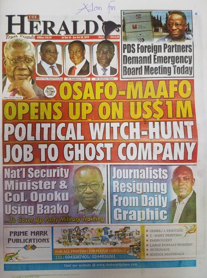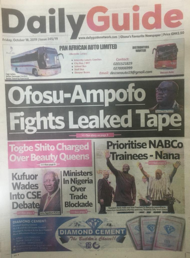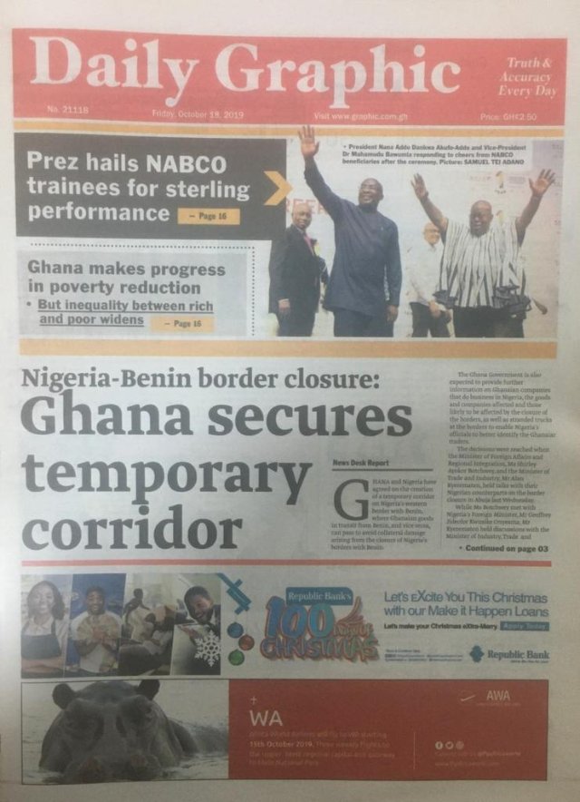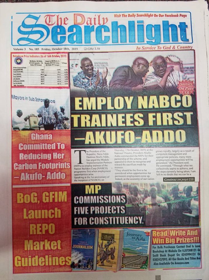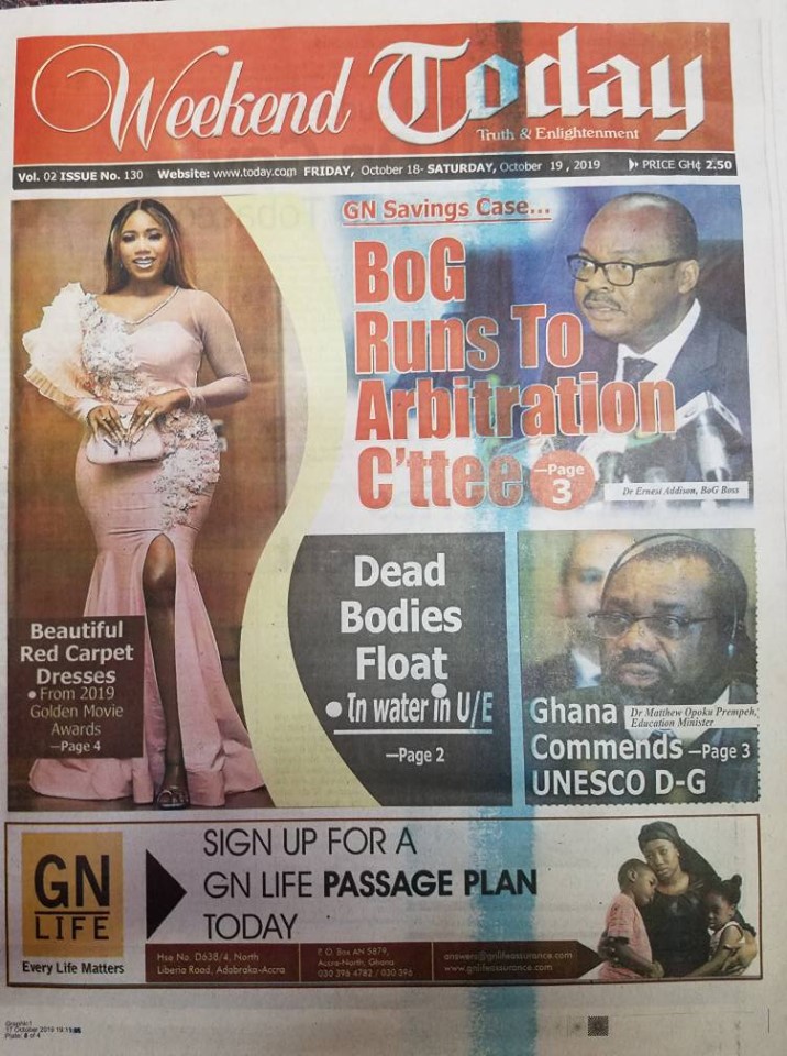Home/Newspaper Headlines/Today at the newsstand Newspaper HeadlinesPolitics Today at the newsstand 0 75 Less than a minute Facebook Twitter LinkedIn Pinterest Skype WhatsApp Telegram Viber Source: Ghana/otecfmghana.com 0 75 Less than a minute Facebook Twitter LinkedIn Pinterest Skype WhatsApp Telegram Viber Show More Share Facebook Twitter LinkedIn Pinterest Skype WhatsApp Telegram Viber Share via Email Print
