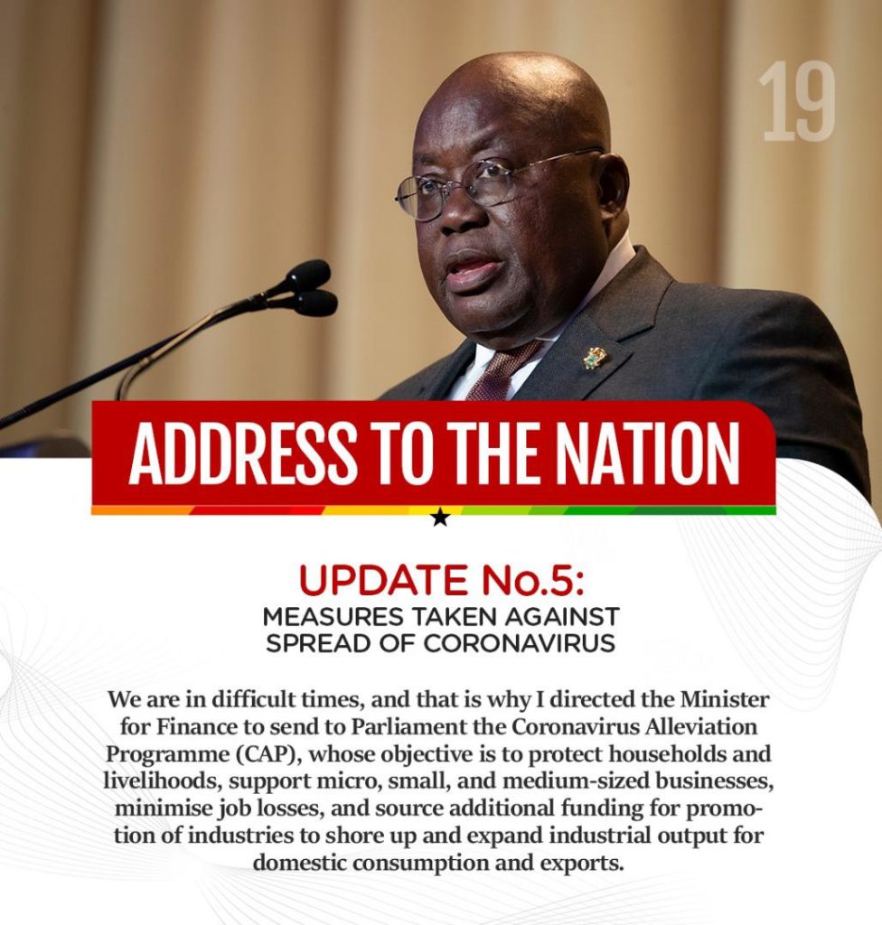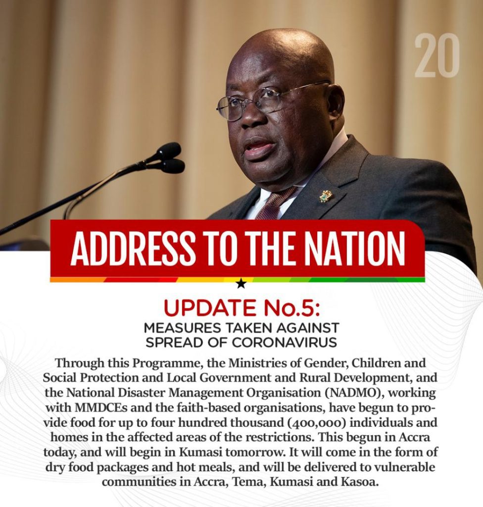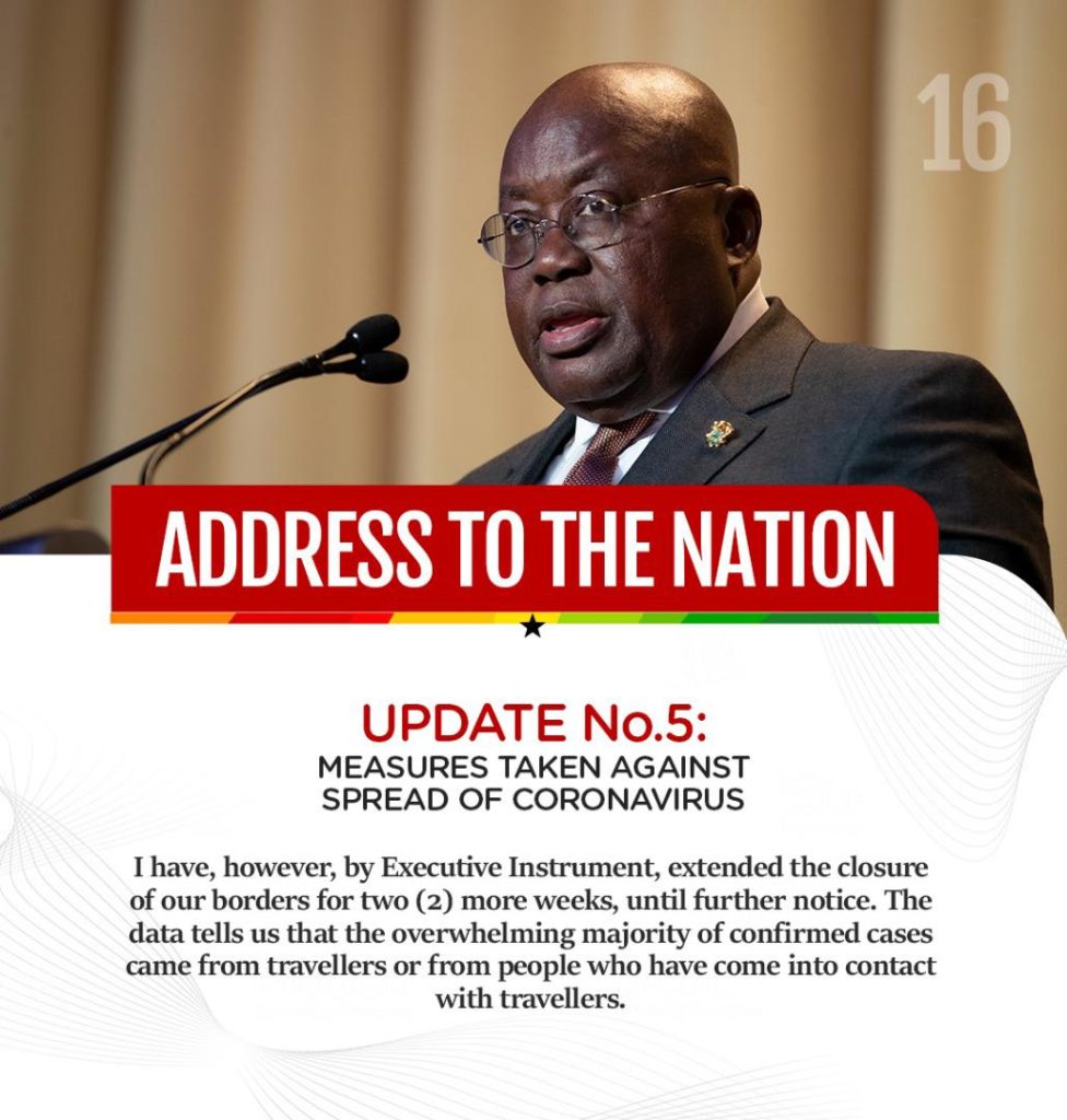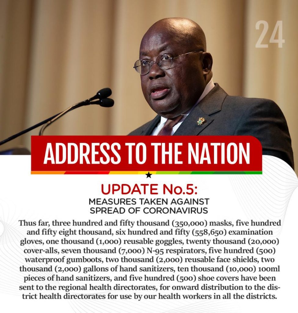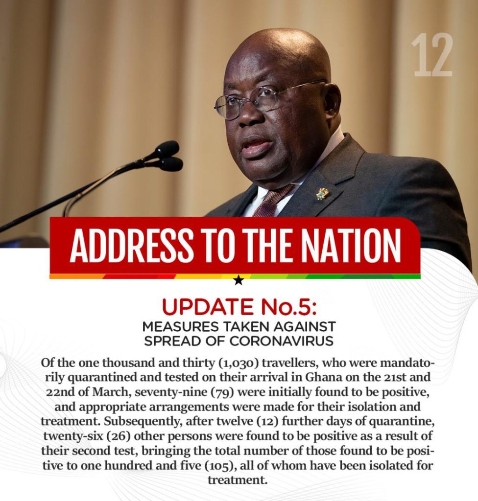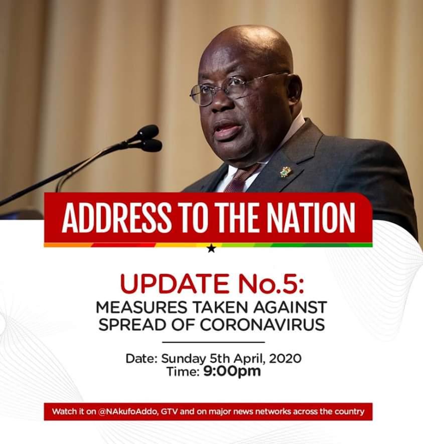 President Nana Addo Dankwa Akufo-Addo on Sunday, April 5, 2020 addressed the nation in a broadcast a week after a lockdown in some parts of the country.