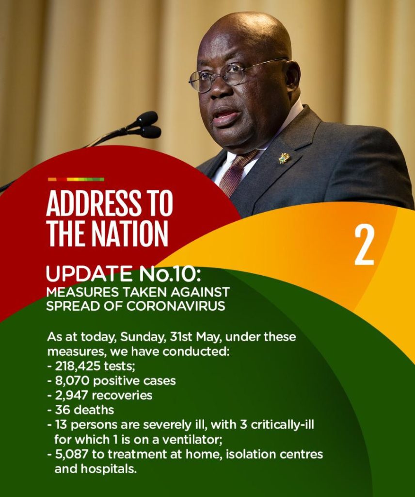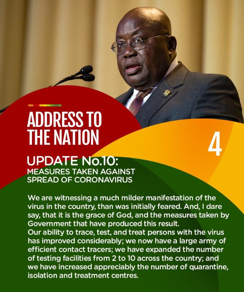 Home/Featured/Inforgraphics: Akufo-Addo’s 10th address to the nation on coronavirus crisis FeaturedGeneral News Inforgraphics: Akufo-Addo’s 10th address to the nation on coronavirus crisis 0 74 Less than a minute Facebook Twitter LinkedIn Pinterest Skype WhatsApp Telegram Viber Source: Ghana/otecfmghana.com 0 74 Less than a minute Facebook Twitter LinkedIn Pinterest Skype WhatsApp Telegram Viber Show More Share Facebook Twitter LinkedIn Pinterest Skype WhatsApp Telegram Viber Share via Email Print