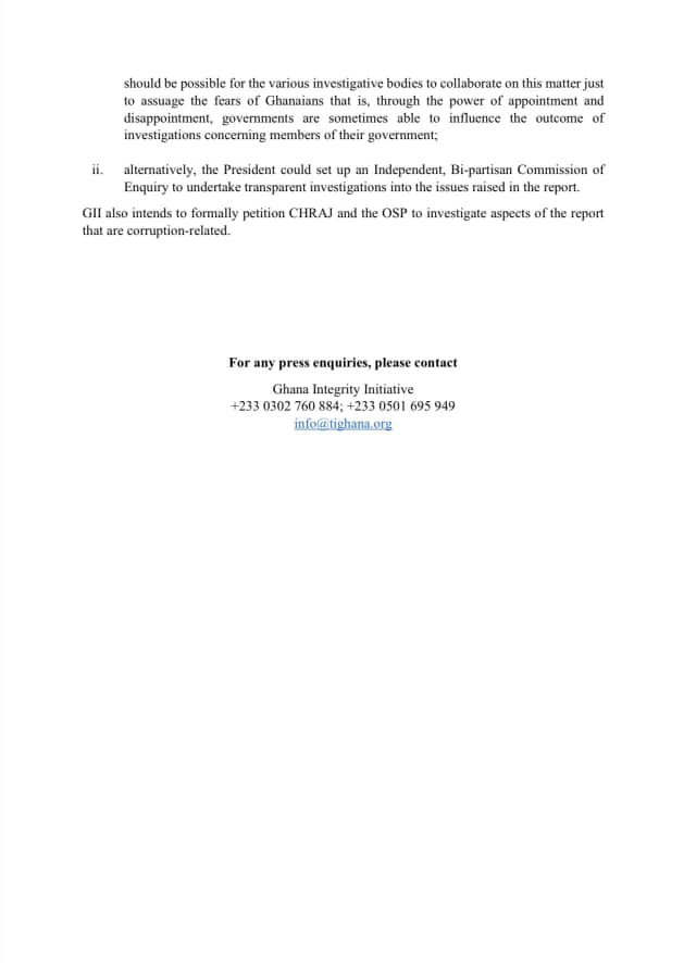 “GII also intends to formally petition CHRAJ and the OSP to investigate aspects of the report