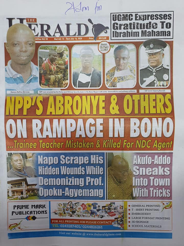 Home/Newspaper Headlines/Today at the newsstand Newspaper Headlines Today at the newsstand 0 74 Less than a minute Facebook Twitter LinkedIn Pinterest Skype WhatsApp Telegram Viber Source: Ghana/otecfmghana.com 0 74 Less than a minute Facebook Twitter LinkedIn Pinterest Skype WhatsApp Telegram Viber Show More Share Facebook Twitter LinkedIn Pinterest Skype WhatsApp Telegram Viber Share via Email Print