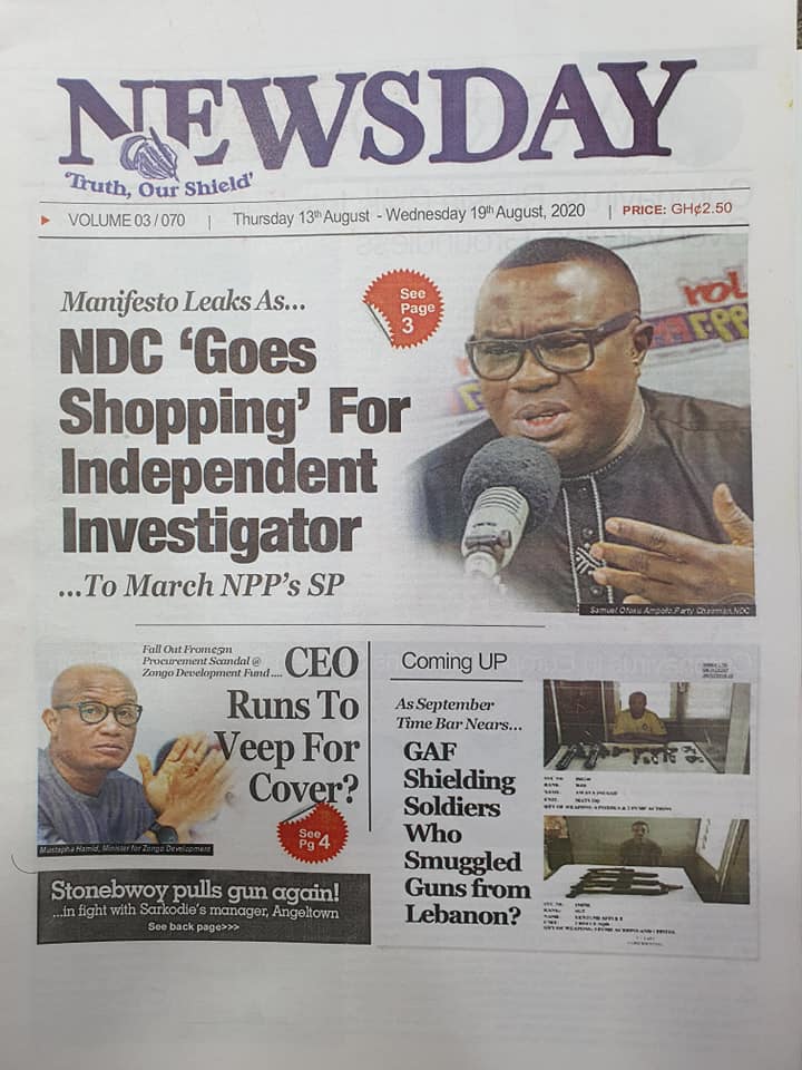 Home/Newspaper Headlines/Today at the newsstand Newspaper Headlines Today at the newsstand 0 167 Less than a minute Facebook Twitter LinkedIn Pinterest Skype WhatsApp Telegram Viber Source: Ghana/otecfmghana.com 0 167 Less than a minute Facebook Twitter LinkedIn Pinterest Skype WhatsApp Telegram Viber Show More Share Facebook Twitter LinkedIn Pinterest Skype WhatsApp Telegram Viber Share via Email Print