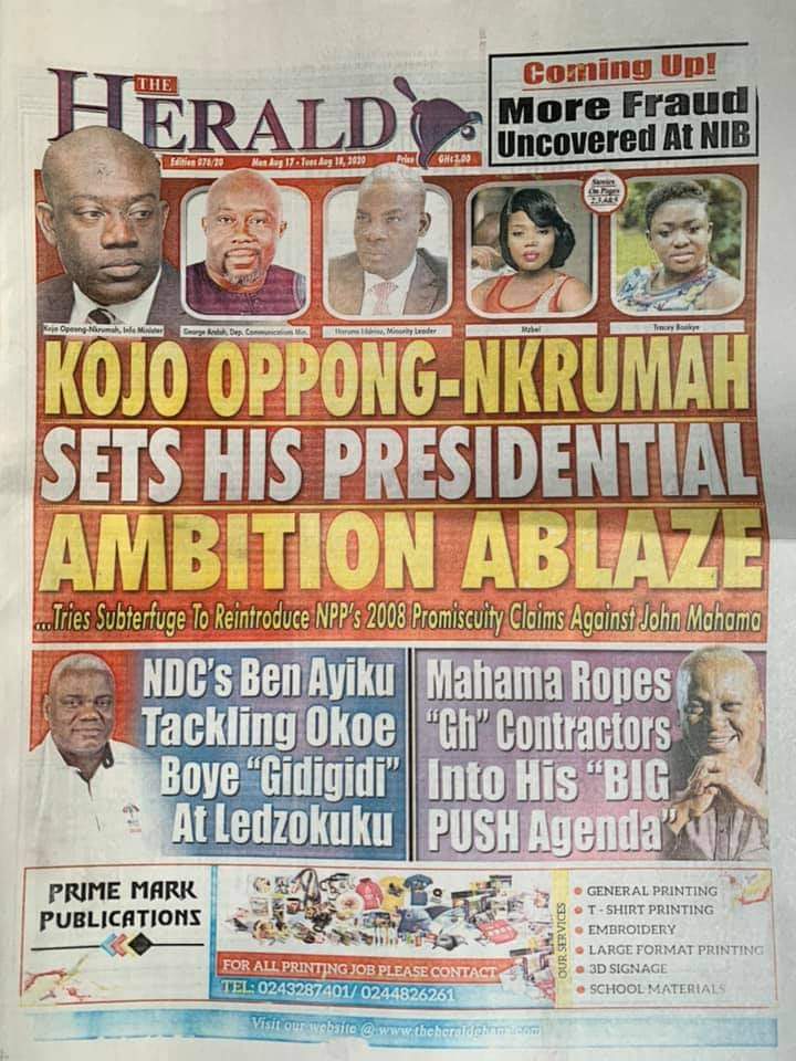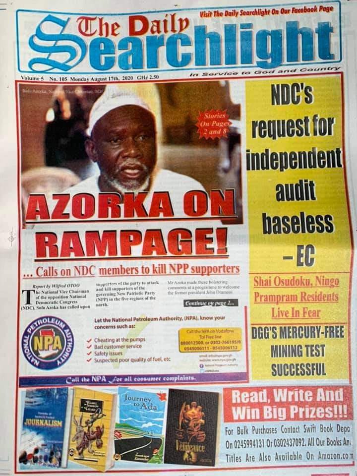Home/Newspaper Headlines/Today at the newsstand Newspaper Headlines Today at the newsstand 0 206 Less than a minute Facebook Twitter LinkedIn Pinterest Skype WhatsApp Telegram Viber Source: Ghana/otecfmghana.com 0 206 Less than a minute Facebook Twitter LinkedIn Pinterest Skype WhatsApp Telegram Viber Show More Share Facebook Twitter LinkedIn Pinterest Skype WhatsApp Telegram Viber Share via Email Print