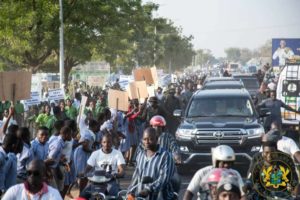 Scores of Dagbon citizens lined the streets of Tamale to show appreciation to the President for his leadership in resolving the dispute.