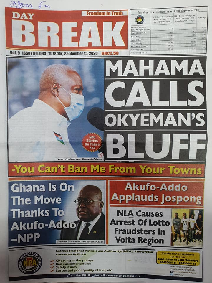 Home/Newspaper Headlines/Today at the newsstand Newspaper Headlines Today at the newsstand 0 73 Less than a minute Facebook Twitter LinkedIn Pinterest Skype WhatsApp Telegram Viber Source: Ghana/otecfmghana.com 0 73 Less than a minute Facebook Twitter LinkedIn Pinterest Skype WhatsApp Telegram Viber Show More Share Facebook Twitter LinkedIn Pinterest Skype WhatsApp Telegram Viber Share via Email Print