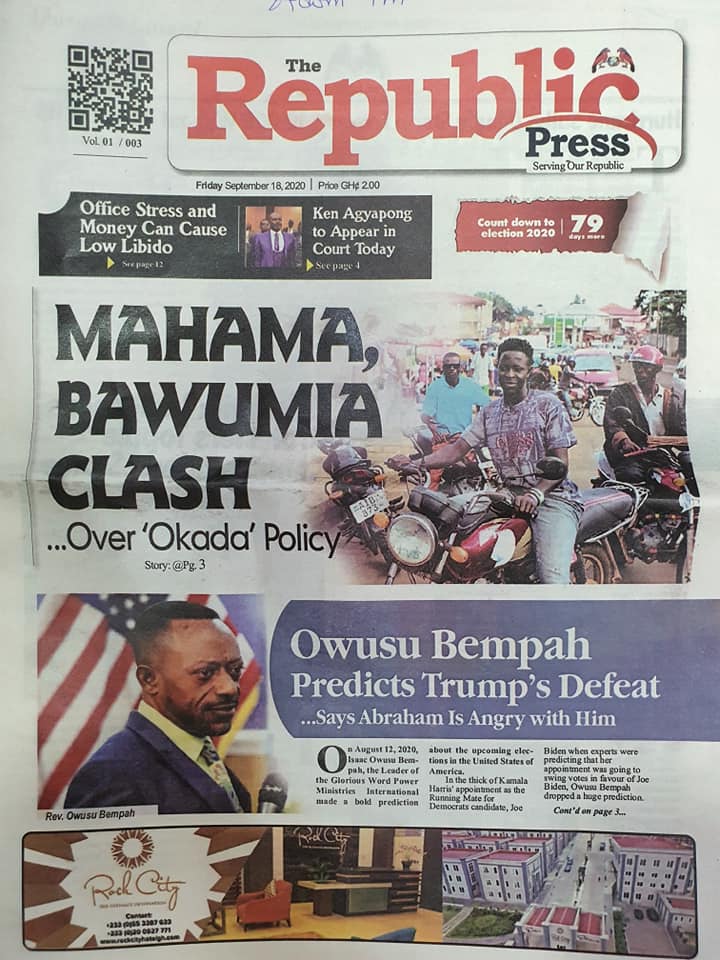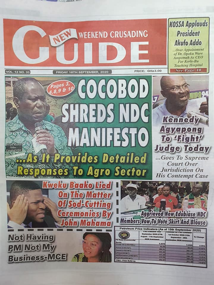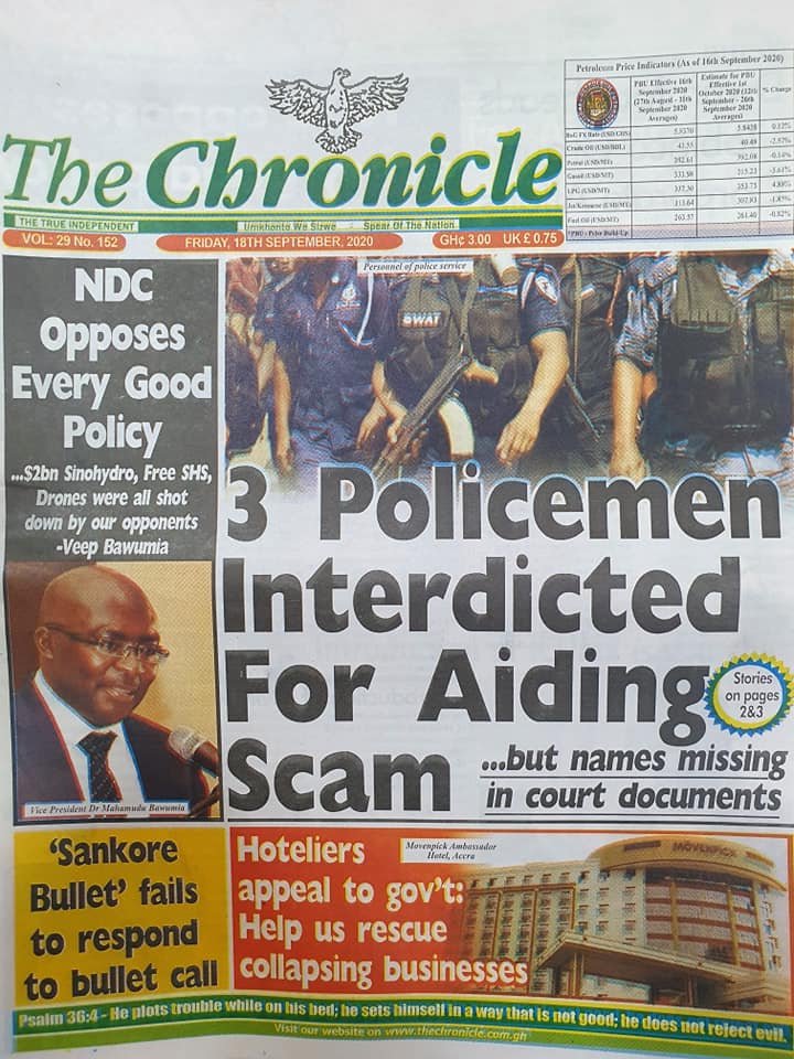 Home/Newspaper Headlines/Today at the newsstand Newspaper Headlines Today at the newsstand 0 442 Less than a minute Facebook Twitter LinkedIn Pinterest Skype WhatsApp Telegram Viber Source: Ghana/otecfmghana.com 0 442 Less than a minute Facebook Twitter LinkedIn Pinterest Skype WhatsApp Telegram Viber Show More Share Facebook Twitter LinkedIn Pinterest Skype WhatsApp Telegram Viber Share via Email Print