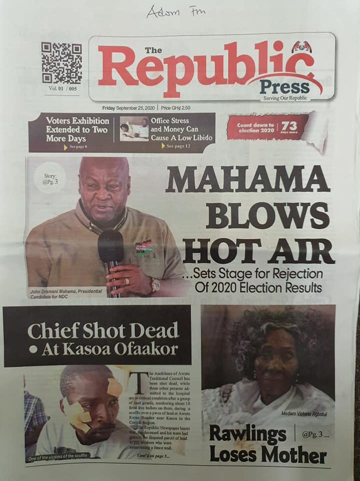 Home/Newspaper Headlines/Today at the newsstand Newspaper Headlines Today at the newsstand 0 635 Less than a minute Facebook Twitter LinkedIn Pinterest Skype WhatsApp Telegram Viber Source: Ghana/otecfmghana.com 0 635 Less than a minute Facebook Twitter LinkedIn Pinterest Skype WhatsApp Telegram Viber Show More Share Facebook Twitter LinkedIn Pinterest Skype WhatsApp Telegram Viber Share via Email Print