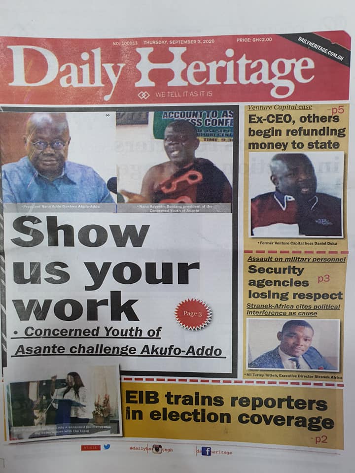 Home/Newspaper Headlines/Today at the newsstand Newspaper Headlines Today at the newsstand 0 122 Less than a minute Facebook Twitter LinkedIn Pinterest Skype WhatsApp Telegram Viber Source: Ghana/otecfmghana.com 0 122 Less than a minute Facebook Twitter LinkedIn Pinterest Skype WhatsApp Telegram Viber Show More Share Facebook Twitter LinkedIn Pinterest Skype WhatsApp Telegram Viber Share via Email Print