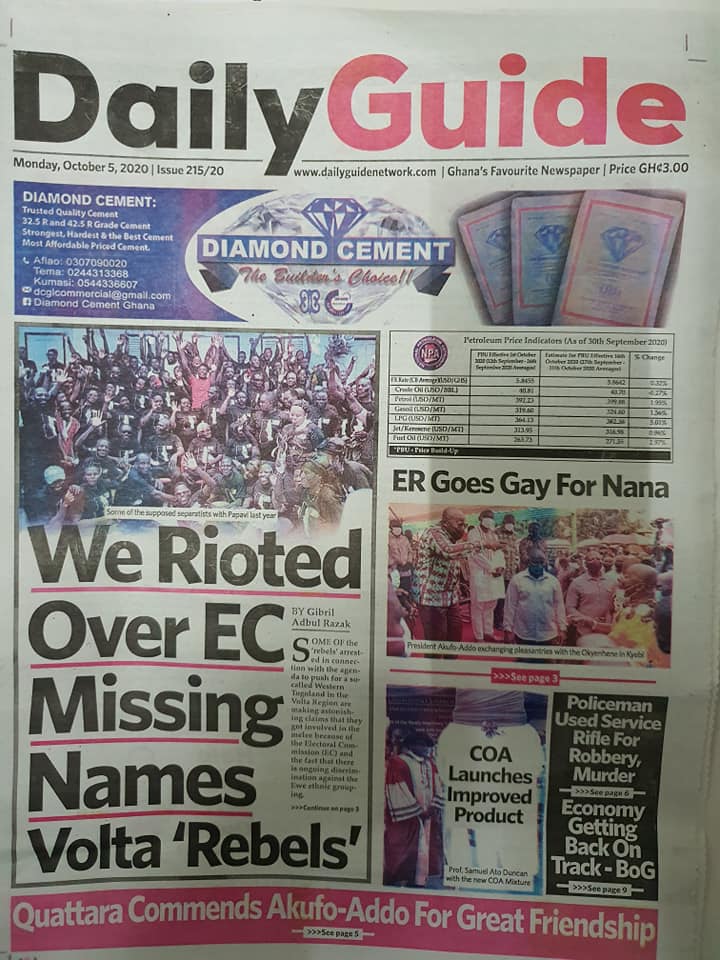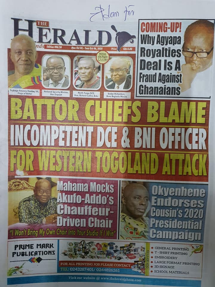 Home/Newspaper Headlines/Today at the newsstand Newspaper Headlines Today at the newsstand 0 212 Less than a minute Facebook Twitter LinkedIn Pinterest Skype WhatsApp Telegram Viber Source: Ghana/otecfmghana.com 0 212 Less than a minute Facebook Twitter LinkedIn Pinterest Skype WhatsApp Telegram Viber Show More Share Facebook Twitter LinkedIn Pinterest Skype WhatsApp Telegram Viber Share via Email Print