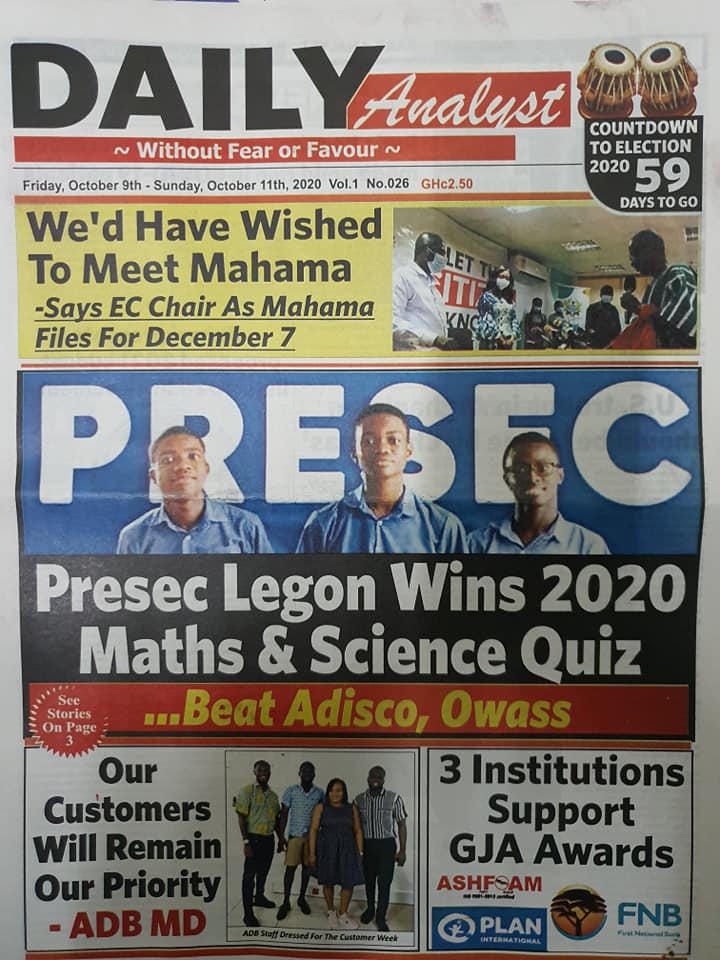 Home/Newspaper Headlines/Today at the newsstand Newspaper Headlines Today at the newsstand 0 105 Less than a minute Facebook Twitter LinkedIn Pinterest Skype WhatsApp Telegram Viber Source: Ghana/otecfmghana.com 0 105 Less than a minute Facebook Twitter LinkedIn Pinterest Skype WhatsApp Telegram Viber Show More Share Facebook Twitter LinkedIn Pinterest Skype WhatsApp Telegram Viber Share via Email Print