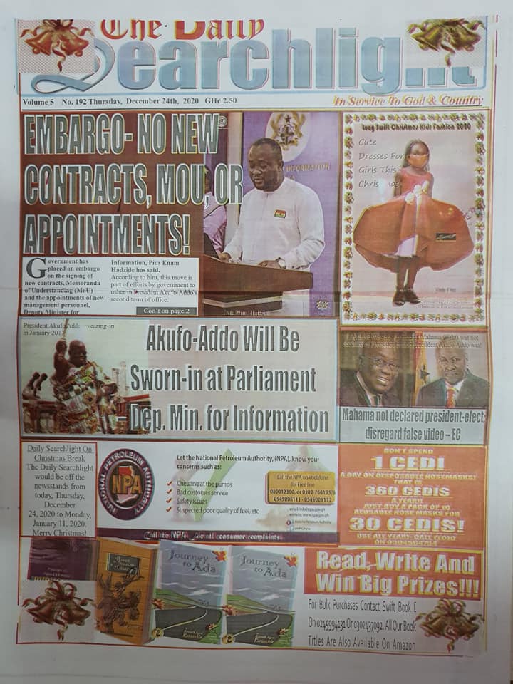 Home/Newspaper Headlines/Today at the newsstand Newspaper Headlines Today at the newsstand 0 911 Less than a minute Facebook Twitter LinkedIn Pinterest Skype WhatsApp Telegram Viber Source: Ghana/otecfmghana.com 0 911 Less than a minute Facebook Twitter LinkedIn Pinterest Skype WhatsApp Telegram Viber Show More Share Facebook Twitter LinkedIn Pinterest Skype WhatsApp Telegram Viber Share via Email Print