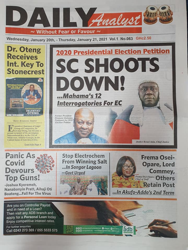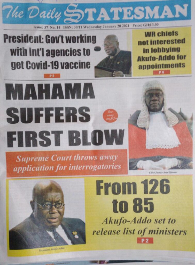 Home/Newspaper Headlines/Today at the newsstand Newspaper Headlines Today at the newsstand 0 82 Less than a minute Facebook Twitter LinkedIn Pinterest Skype WhatsApp Telegram Viber Source: Ghana/otecfmghana.com 0 82 Less than a minute Facebook Twitter LinkedIn Pinterest Skype WhatsApp Telegram Viber Show More Share Facebook Twitter LinkedIn Pinterest Skype WhatsApp Telegram Viber Share via Email Print