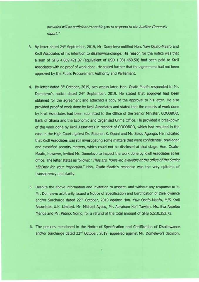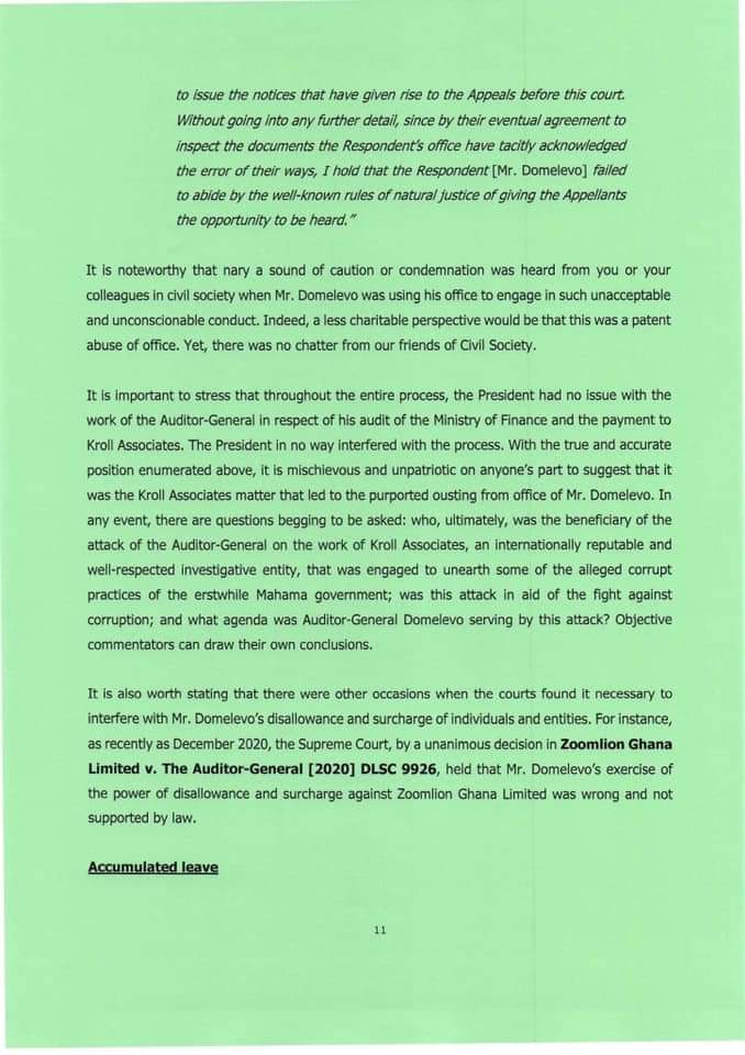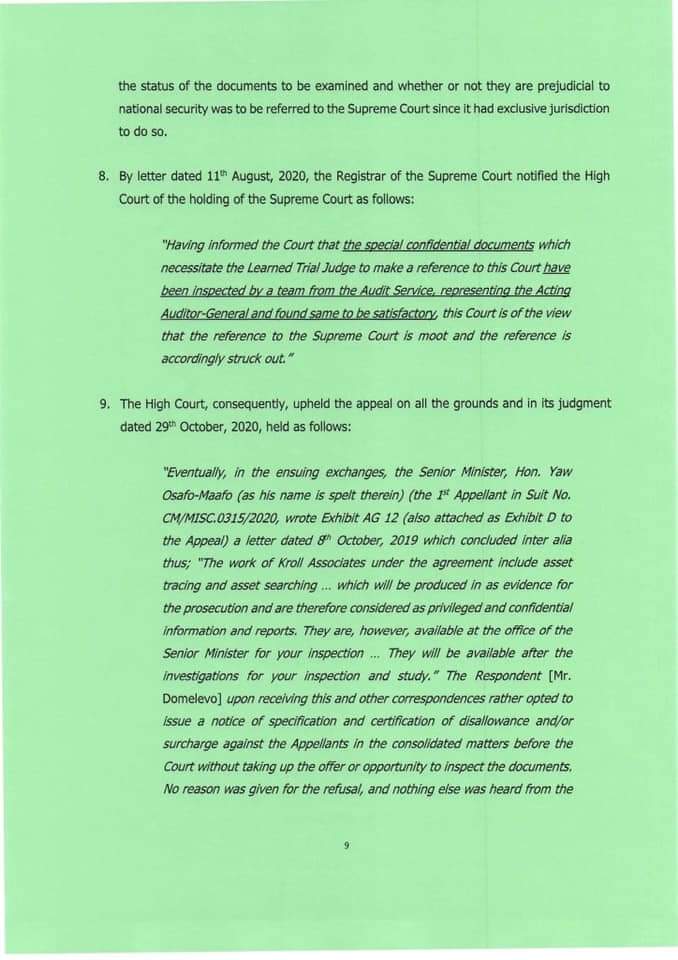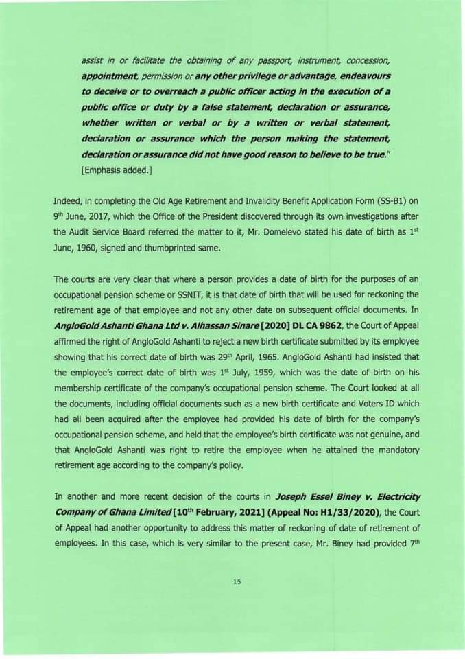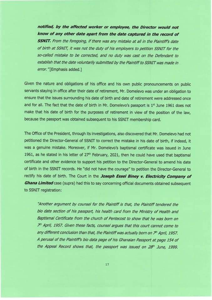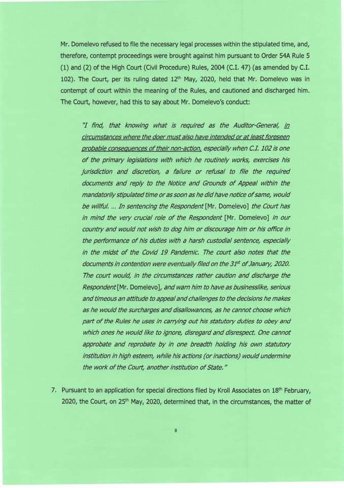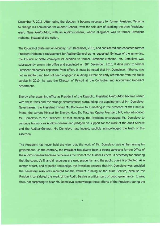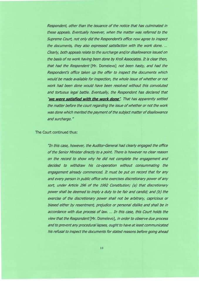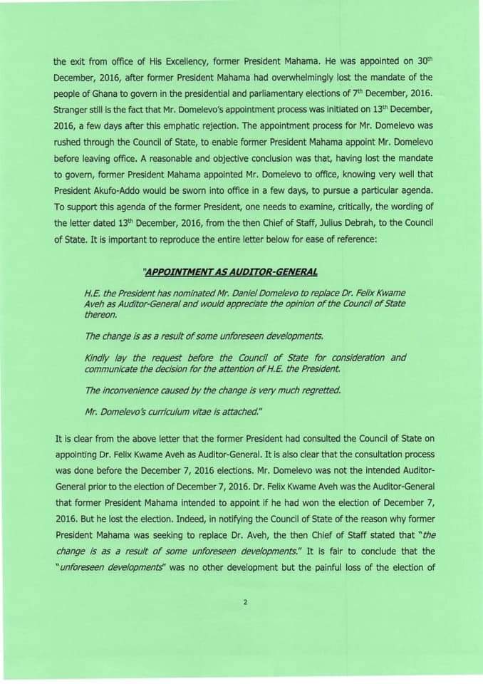 “Mr Domelevo was not the intended Auditor-General prior to the election of December 7, 2016. Dr Felix Kwame Aveh was the Auditor-General that former President Mahama intended to appoint if he had won the election of December 7, 2016. But he lost the election. Indeed, in notifying the Council of State of the reason why former President Mahama was seeking to replace Dr Aveh, the then-Chief of Staff stated that ‘the change is as a result of some unforeseen developments.”