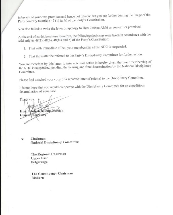 1. That with immediate effect, your membership of the NDC is suspended.